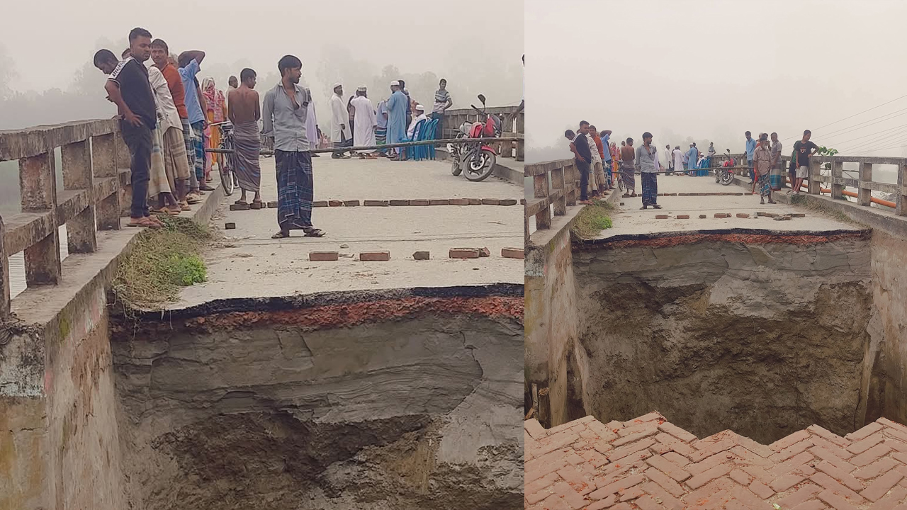 সেতুর সড়ক ধসে বন্ধ যান চলাচল, দুর্ভোগে ২৫ গ্রামের মানুষ