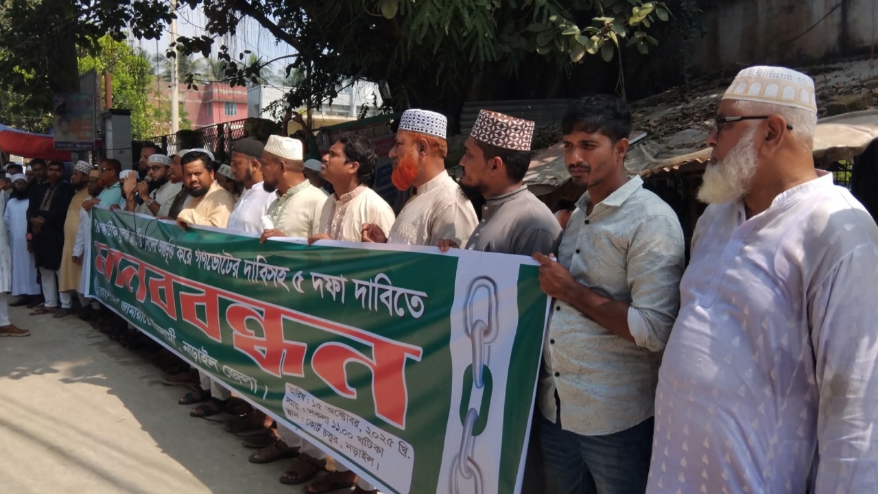 নড়াইলে পিতা আব্দুর রহমান মোল্যা হত্যা মামলার বাদী ছেলে ইব্রাহিম মোল্যা (৪২)-কে ডিবি পুলিশ পরিচয়ে তুলে নেওয়ার অভিযোগে সংবাদ সম্মেলন ও মানববন্ধন অনুষ্ঠিত হয়েছে।বুধবার (৪ সেপ্টেম্বর) সদর উপজেলার শেখহাটি বাজারে...