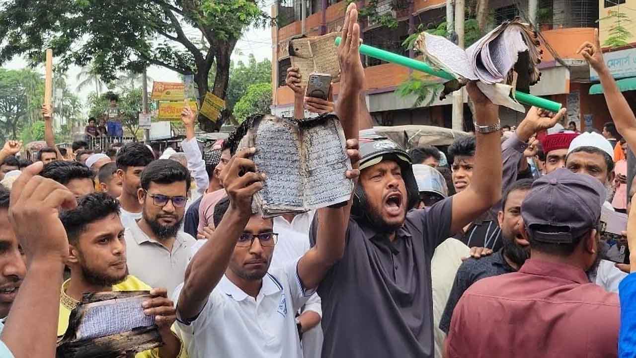 পাবনায় অফিস ও কোরআন পোড়ানোর প্রতিবাদে জামায়াতের বিক্ষোভ
