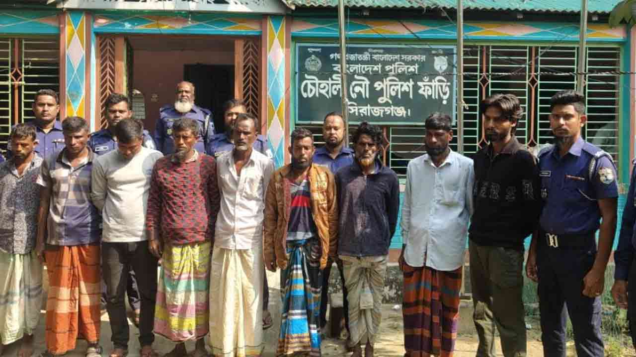 সিরাজগঞ্জের চৌহালীতে যমুনা নদীতে বালুবাহী বাল্কহেড থেকে চাঁদাবাজির সময় হাতেনাতে এক ইউপি সদস্যসহ ১০ জনকে আটক করেছে নৌ-পুলিশ। শনিবার (১৫ নভেম্বর) দুপুরের দিকে ঘোড়জান এলাকার যমুনা নদী থেকে তাদেরকে আটক করা হয়। আটকরা হলেন- ঘোড়জান ইউনিয়ন ৫নং ওয়ার্ডের ইউপি সদস্য মানিক সিকদার