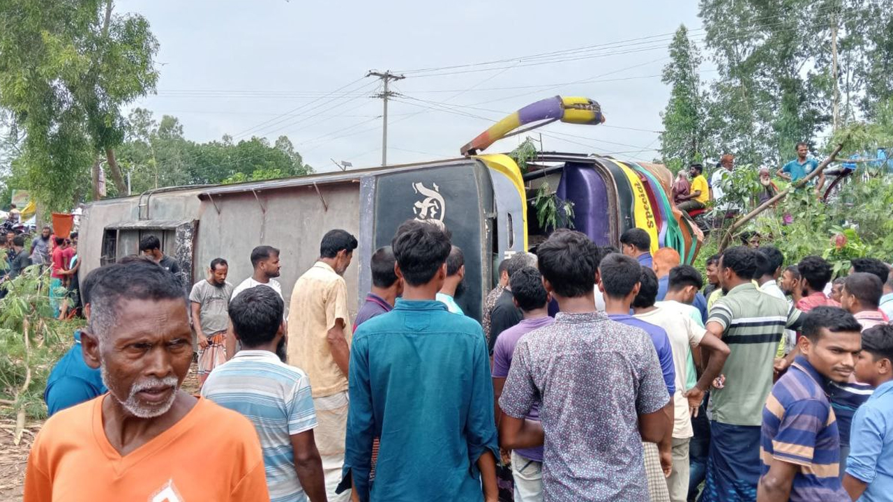 ঘোড়াঘাটে নিয়ন্ত্রণ হারিয়ে যাত্রীবাহী বাস খাদে, আহত ২০