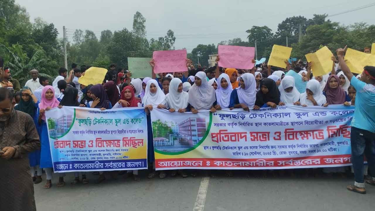গাইবান্ধায় ফুলছড়ি উপজেলার কাতলামারিতে সরকারি টেকনিক্যাল স্কুল অ্যান্ড কলেজ (টিএসসি) বাস্তবায়নের দাবিতে সড়ক অবরোধ করে বিক্ষোভ মিছিল করেছে শিক্ষার্থীরা।