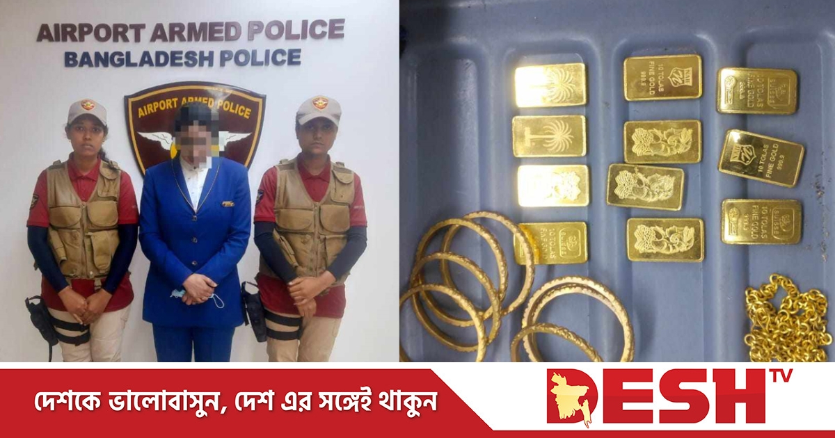রাজধানীর হজরত শাহজালাল আন্তর্জাতিক বিমানবন্দরে সৌদি এয়ারলাইন্সের একটি বিমানের এক নারী কেবিন ক্রুর কাছে প্রায় ২ কেজি সোনার বারসহ অলংকার উদ্ধার করা হয়েছে। এ ঘটনায় ওই নারীকে গ্রেপ্তার করেছে এয়ারপোর্ট আর্মড পুলিশ ব্যাটালিয়ন।