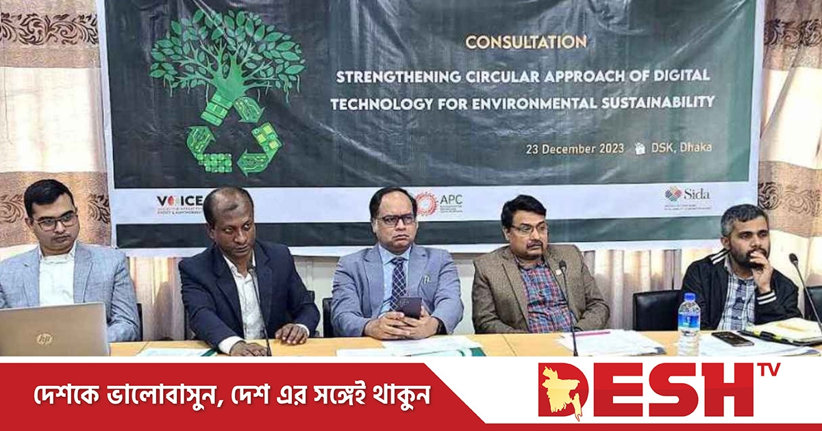 বেসরকারি গবেষণা প্রতিষ্ঠান ভয়েসের পৃষ্ঠপোষকতায় ‘টেকসই পরিবেশ উন্নয়নের ক্ষেত্রে ডিজিটাল যন্ত্রপাতির সার্কুলার ব্যবহার’ শীর্ষক এ সভায় অংশ নেন নীতিনির্ধারক, বেসরকারি খাতের কোম্পানি, ই-বর্জ্য ব্যবস্থাপনা প্রতিষ্ঠান ও সুশীল সমাজের প্রতিনিধি, শিক্ষাবিদ ও বিশেষজ্ঞরা।