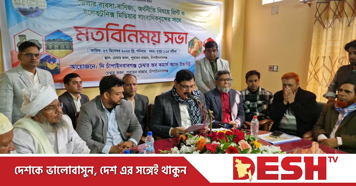 শনিবার (২৭ ডিসেম্বর) দুপুরে চাঁপাইনবাবগঞ্জ চেম্বার ভবনে সাংবাদিকদের সঙ্গে এক মতবিনিময় সভায় তিনি এ মন্তব্য করেন।