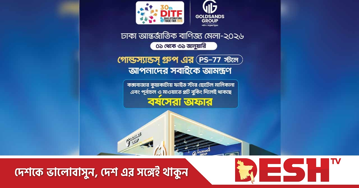 নতুন বছরের প্রথম দিন থেকেই শুরু হতে যাচ্ছে বহুল প্রতীক্ষিত ৩০তম ঢাকা আন্তর্জাতিক বাণিজ্য মেলা (ডিআইটিএফ)। প্রতিবছরের মতো এবারও দেশের পর্যটন ও রিয়েল এস্টেট খাতে শীর্ষস্থানীয় বিনিয়োগকারী প্রতিষ্ঠান গোল্ডস্যান্ডস গ্রুপ মেলায় অংশগ্রহণ করছে। এ বছর মেলাকে কেন্দ্র করে প্রতিষ্ঠানটি গ্রাহকদের জন্য নিয়ে এসেছে বর্ষসেরা আকর্ষণীয় সব অফার ও বিশেষ সুবিধা।