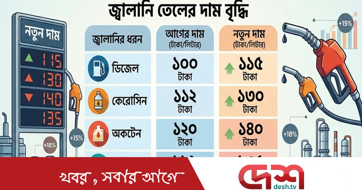 এ ক্ষেত্রে প্রতি লিটার ডিজেল ১৫ টাকা, অকটেন ২০ টাকা, পেট্রোল ১৯ টাকা ও কেরোসিনের দাম ১৮ টাকা বেড়েছে। জ্বালানি তেলের নতুন দাম মধ্যরাত (১৯ এপ্রিল) থেকে কার্যকর হবে বলে জানিয়েছে জ্বালানি বিভাগ।