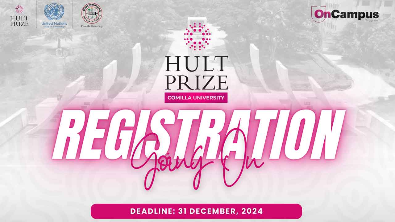 কুমিল্লা বিশ্ববিদ্যালয়ে (কুবি) -তে হাল্ট প্রাইজ ২০২৪-২৫ এর অন ক্যাম্পাস রাউন্ডের রেজিস্ট্রেশন শুরু হয়েছে। বিশ্ববিদ্যালয়ের পঞ্চমবারের মতো শুরু হওয়া এই আয়োজনের রেজিস্ট্রেশন চলবে ১৮ ডিসেম্বর(বুধবার) থেকে আগামী ৩১ ডিসেম্বর(মঙ্গলবার) পর্যন্ত।
