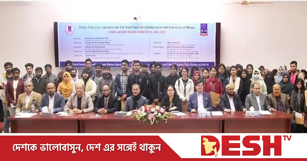 সোমবার (৫ জানুয়ারি) বিশ্ববিদ্যালয়ের নবাব নওয়াব আলী চৌধুরী সিনেট ভবনের কনফারেন্স রুমে আয়োজিত বৃত্তি প্রদান অনুষ্ঠানে প্রধান অতিথি হিসেবে উপস্থিত ছিলেন ঢাবির উপাচার্য অধ্যাপক ড. নিয়াজ আহমদ খান।