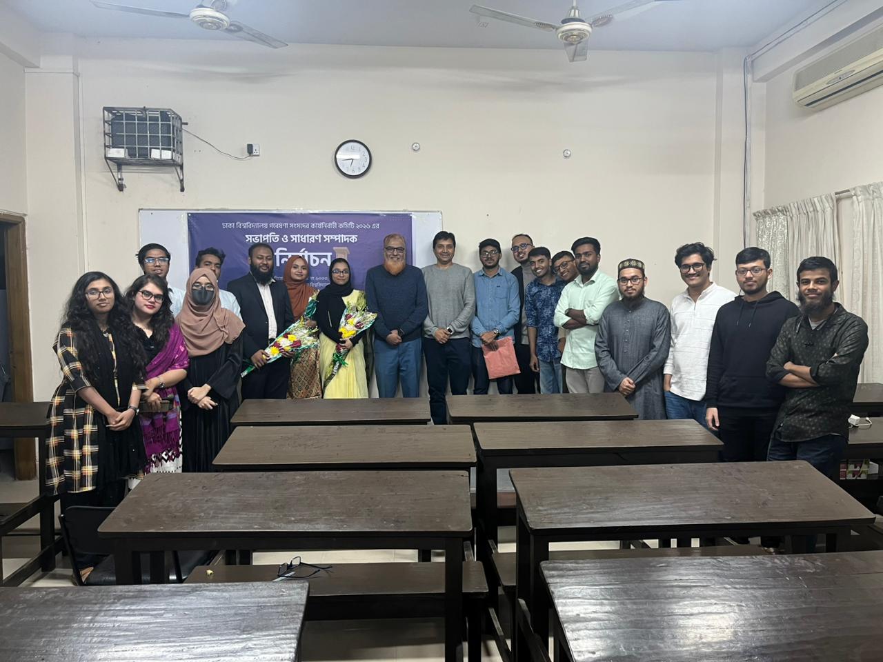 এতে সভাপতি পদে চারুকলা অনুষদের কারুশিল্প বিভাগের ২০১৮-১৯ শিক্ষাবর্ষের শিক্ষার্থী হুমায়রা আনজীর এবং সাধারণ সম্পাদক পদে পরিসংখ্যান বিভাগের ২০২০-২১ শিক্ষাবর্ষের শিক্ষার্থী মনোয়ার হোসেন আপন নির্বাচিত হয়েছেন ।