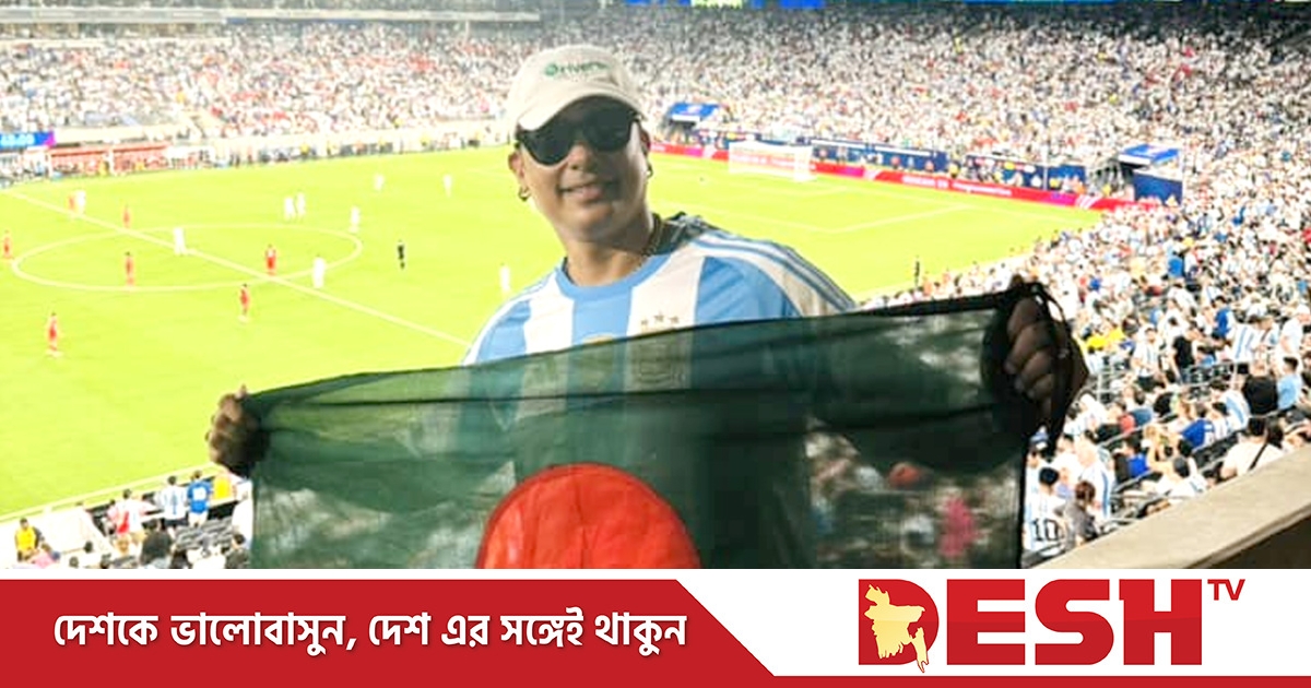 আর্জেন্টিনার জার্সি গায়ে বাংলাদেশের পতাকা হাতে মাঠে বসে প্রিয় দলকে সমর্থন দিতে দেখা গেছে তাকে। সামাজিক যোগাযোগ মাধ্যমে সেই ছবি ও ভিডিও প্রকাশ করেছেন তিনি।