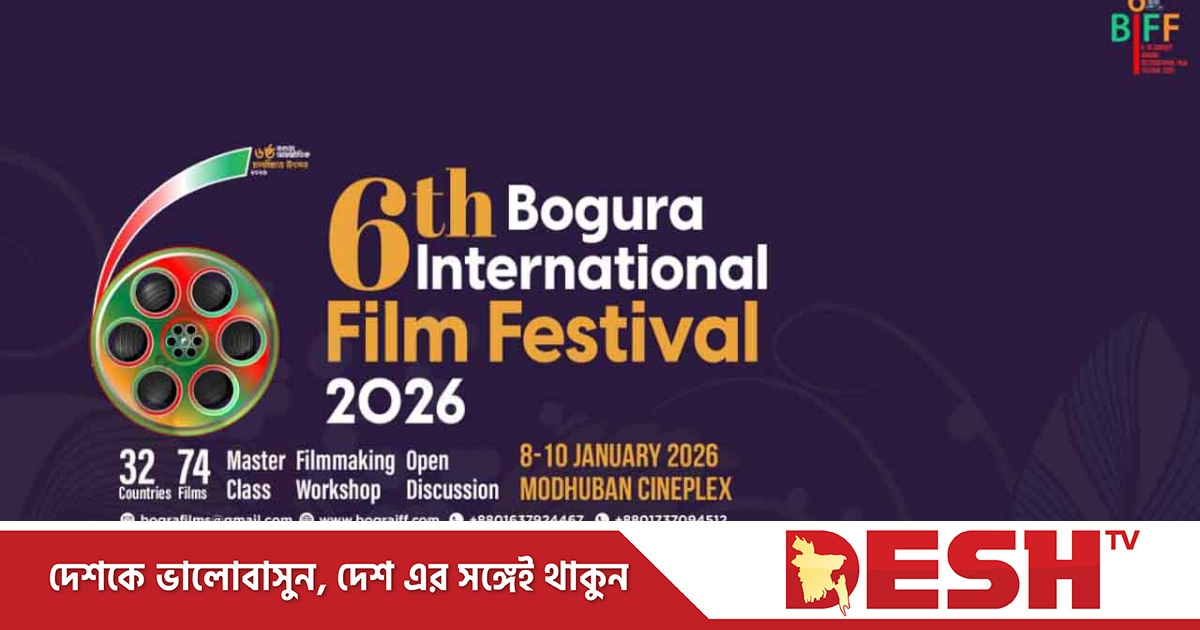 বগুড়ায় আজ থেকে শুরু হচ্ছে তিন দিনব্যাপী ৬ষ্ঠ বগুড়া আন্তর্জাতিক চলচ্চিত্র উৎসব। ‘তারুণ্যের চলচ্চিত্র, তারুণ্যের উৎসব’ শিরোনামে আয়োজিত এই উৎসবে ৩২ দেশের ৭৪টি চলচ্চিত্র প্রদর্শিত হবে। মধুবন সিনেপ্লেক্স ও জেলা শিল্পকলা একাডেমিতে চলবে নানা ধরনের চলচ্চিত্র প্রদর্শনী, মাস্টার ক্লাস ও কর্মশালা। এবারের উৎসব বিশেষভাবে উৎসর্গ করা হয়েছে ঋত্বিক ঘটকের জন্মশতবর্ষের প্রতি।