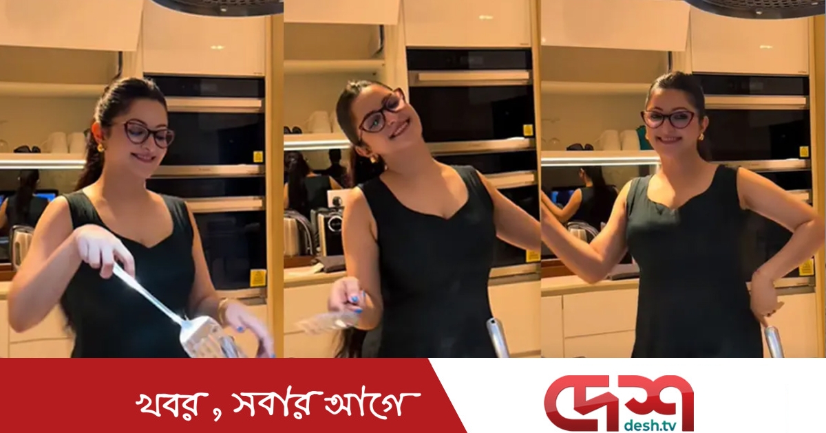ভিডিওতে দেখা যায়, এদিন পরীমণির চোখে চশমা এবং পরনে একটি হাতাখোলা কালো ড্রেস। সুন্দর, আধুনিক রান্নাঘরে চুলে ঝুঁটি বাঁধা অবস্থায় হাতে খুন্তি। কড়াইতে বসানো চিংড়ি।