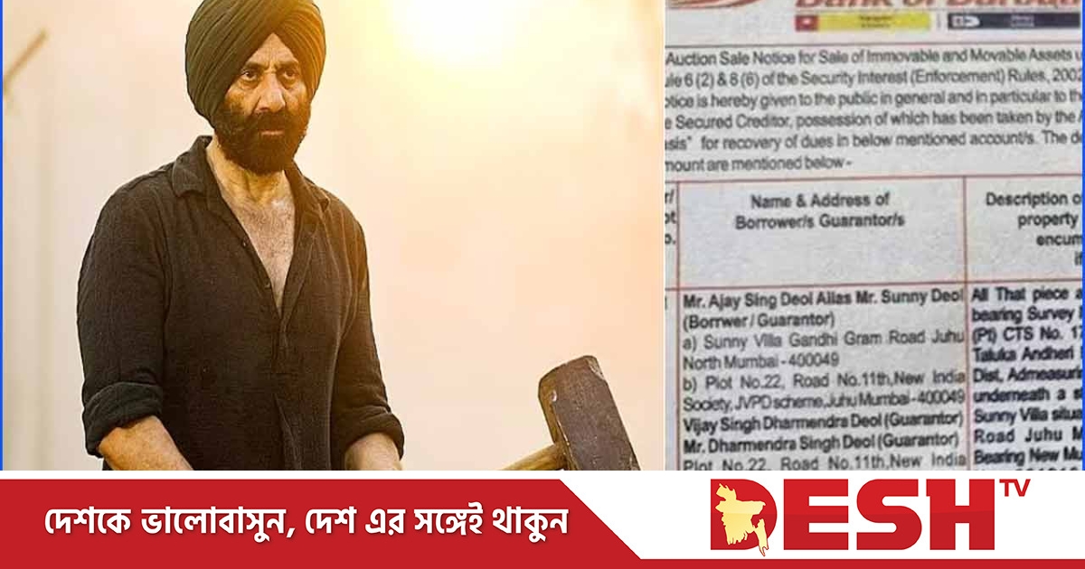 বলিউড অভিনেতা সানি দেওলের বাড়ি নিলামে তোলা হয়েছে। ব্যাংক ঋণ পরিশোধ না করায় পশ্চিম মুম্বাইয়ের জুহুতে অবস্থিত তার বাড়িটি নিলামে তোলার বিজ্ঞপ্তি প্রকাশ করেছে ব্যাংক অব বারোদা।