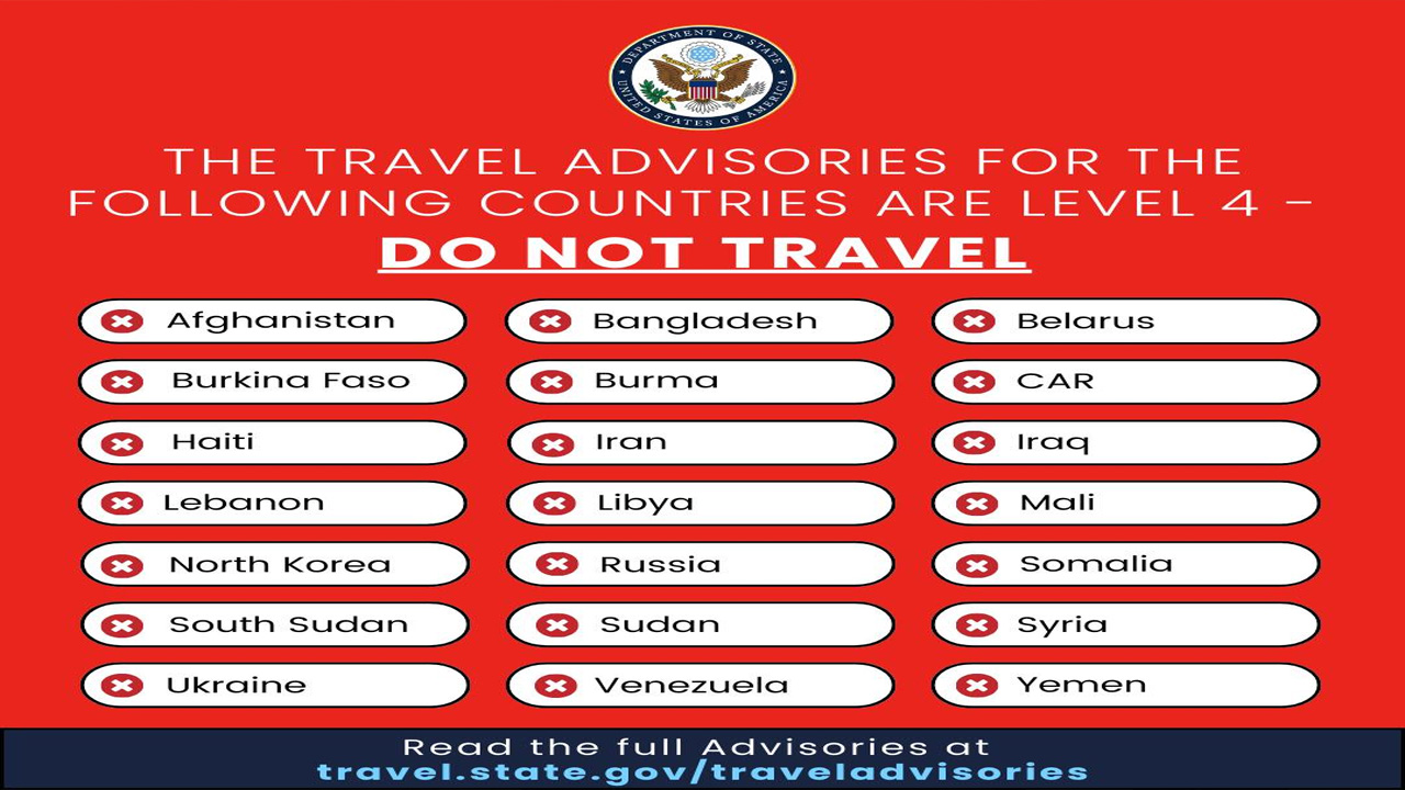মার্কিন নাগরিকদের পরবর্তী নির্দেশ না দেওয়া পর্যন্ত এ দেশগুলো ভ্রমণ না করতে পরামর্শ দেওয়া হয়েছে।