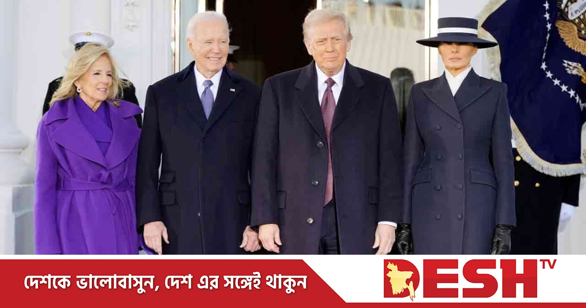শপথ নেওয়ার আগে তাকে হোয়েইট হাউসে স্বাগত জানান বিদায়ী প্রেসিডেন্ট জো বাইডেন।
