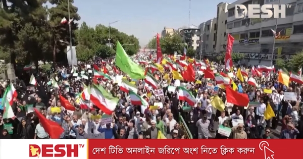 তেহরান বিশ্ববিদ্যালয়ে পবিত্র জুমার নামাজের পর বড় জমায়েত হয়। এ সময় বিক্ষোভকারীদের হাতে ছিল ইরান, ফিলিস্তিন ও হিজবুল্লাহর পতাকা।