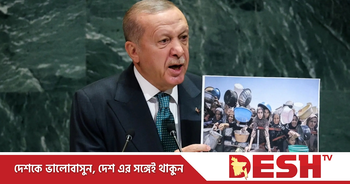 জাতিসংঘের সাধারণ অধিবেশনে ক্ষুধার্ত গাজাবাসীর ছবি প্রদর্শন করেছেন তুরস্কের প্রেসিডেন্ট রিসেপ তাইয়েপ এরদোগান। তিনি বলেন, ‘এটাই গাজার বাস্তবতা—এটিকে অন্যভাবে ব্যাখ্যা করার সুযোগ নেই।’