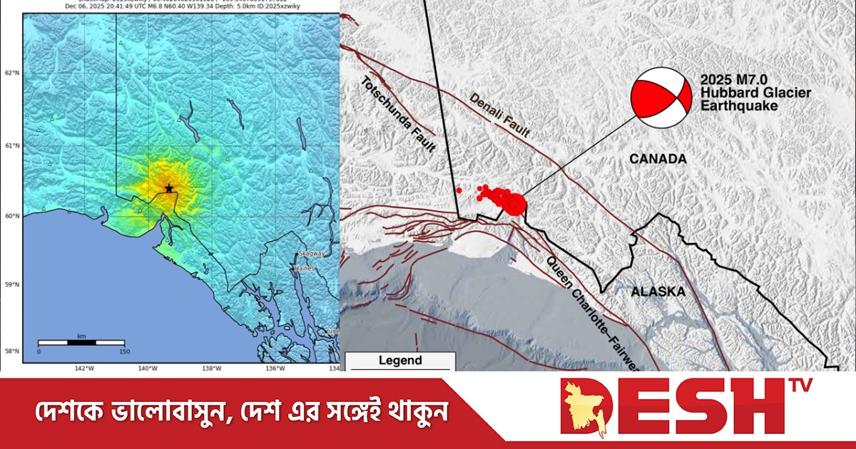 সংবাদমাধ্যম ডেইলি মেইলের প্রতিবেদনে বলা হয়, শনিবার আলাস্কা ও কানাডার ইউকন সীমান্তের একটি প্রত্যন্ত অঞ্চলে ৭ দশমিক শূন্য মাত্রার একটি শক্তিশালী ভূমিকম্প আঘাত হেনেছে। তবে ভূমিকম্পের ঘটনায় সুনামির সতর্কতা জারি করা হয়নি। এছাড়া তাৎক্ষণিকভাবে ক্ষয়ক্ষতি বা আহত হওয়ার কোনো খবর পাওয়া যায়নি।