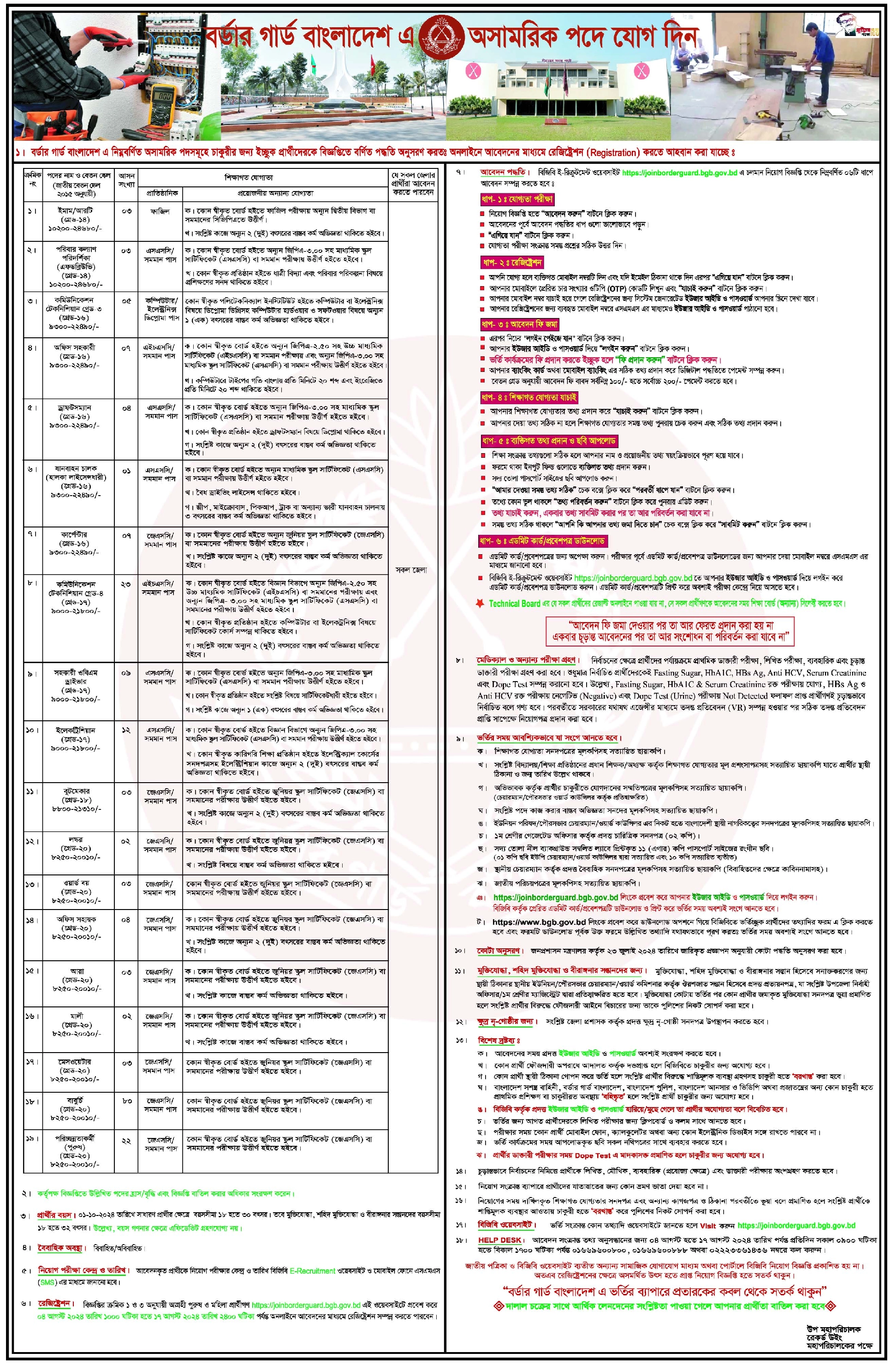 শিক্ষাগত যোগ্যতা: জেএসসি বা সমমান পাস।