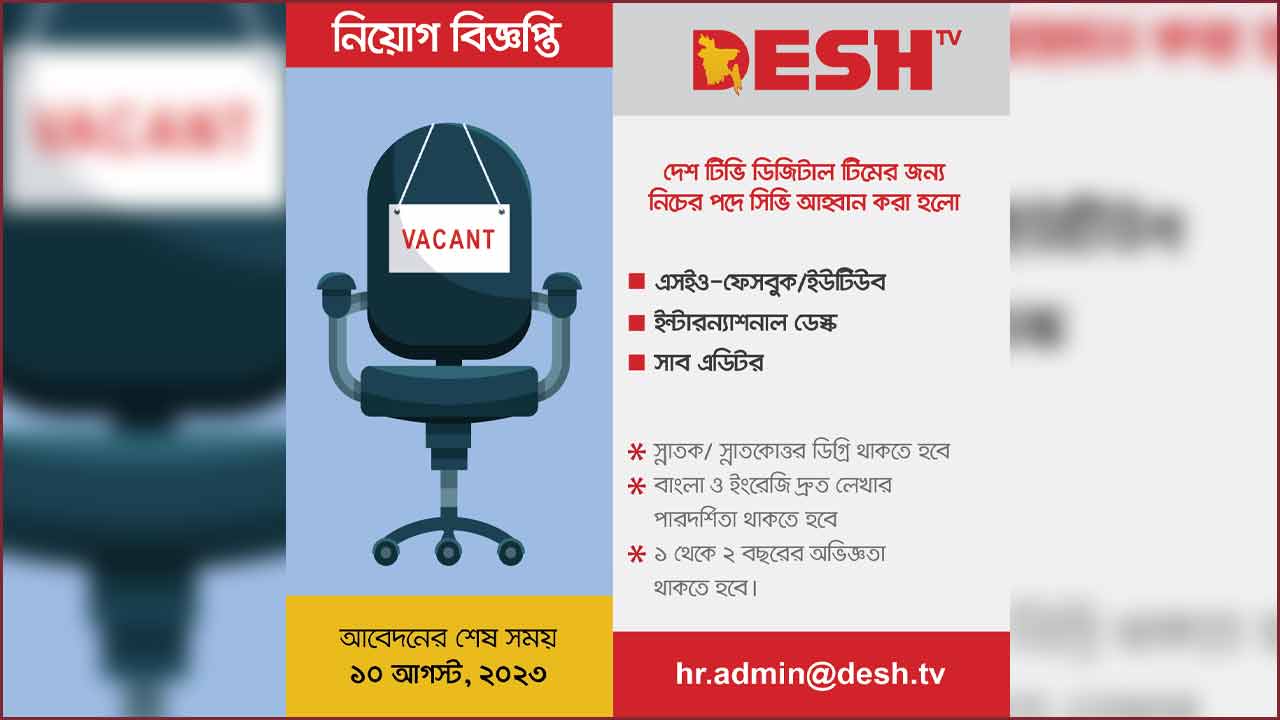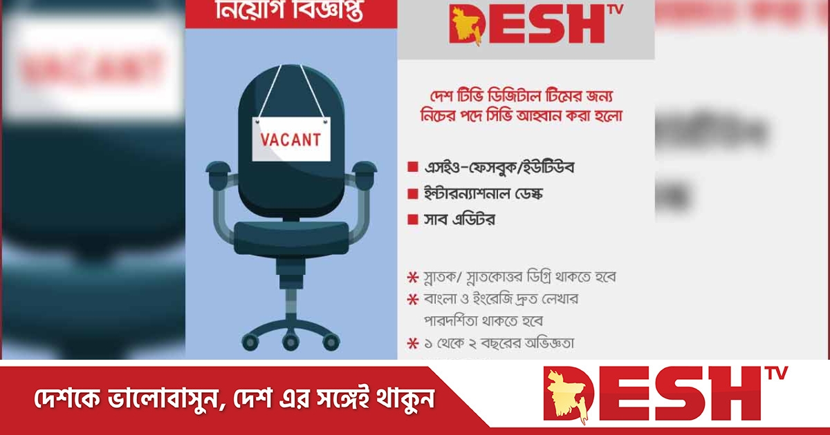 দেশের স্বনামধন্য টেলিভিশন চ্যানেল দেশ টিভির ডিজিটালে টিমে বিভিন্ন পদে নিয়োগ দেওয়া হবে। আবেদন করতে পারবেন অনলাইনে।