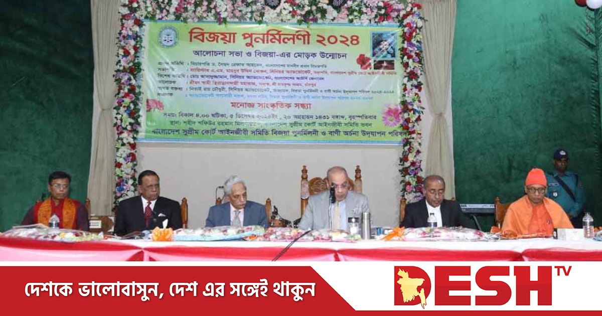 শারদীয় দুর্গোৎসবের ‘বিজয়া পুনর্মিলনী’ অনুষ্ঠানে প্রধান অতিথির বক্তব্যে তিনি একথা বলেন। বৃহস্পতিবার (৫ ডিসেম্বর) সমিতির মিলণায়তনে এ অনুষ্ঠানের আয়োজন করে সুপ্রিম কোর্ট আইনজীবী সমিতি।