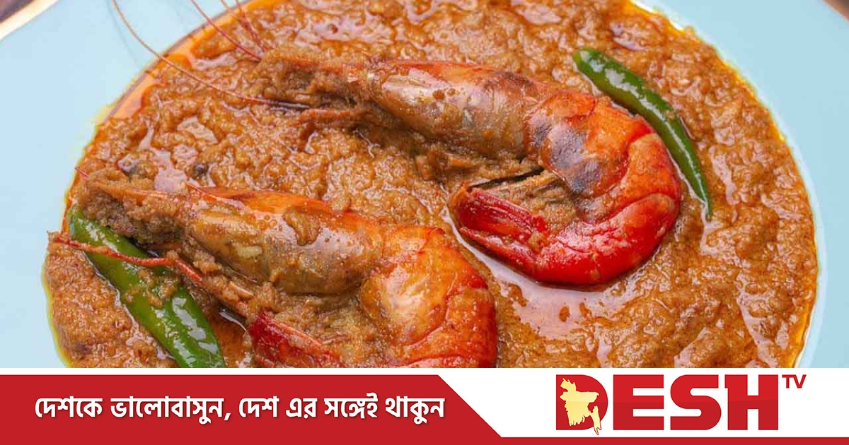 এরপর চিংড়িগুলো দিয়ে দিন, আস্তে আস্তে নাড়তে থাকুন। এবার ঢাকনা দিয়ে দিন মিনিট দুয়েকের জন্য। চিংড়ির ভেতর যেন মশলা ভালোভাবে যায়, এজন্য অল্প আঁচে একটু নেড়ে দিন। এবার আগে আলাদা করে রাখা কোকোনাট মিল্ক দিয়ে দিন এবং নেড়ে নিন। কোনো পানি ব্যবহার করার দরকার নেই, ঝোল হওয়ার জন্য কোকোনাট মিল্ক যথেষ্ট। এবার আস্ত কাঁচা মরিচ ও ঘি দিয়ে দিন। ঢাকনা দিয়ে ১০ মিনিটের মতো রান্না করুন।