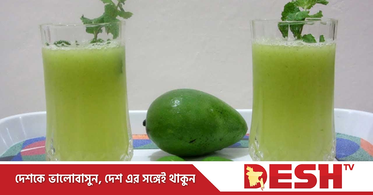 উপকরণ : পাতলা স্লাইজ করে কাটা আম ১ কাপ, লবণ এক টেবিল চামচ, চিনি স্বাদমতো, লেবুর রস ১ চাচম( ইচ্ছে হলে), পুদিনা পাতা ৮-১০-টা, ধনে পাতা আধা ১ চা চামচ, ঠান্ডা পানি প্রয়োজন অনুযায়ী।