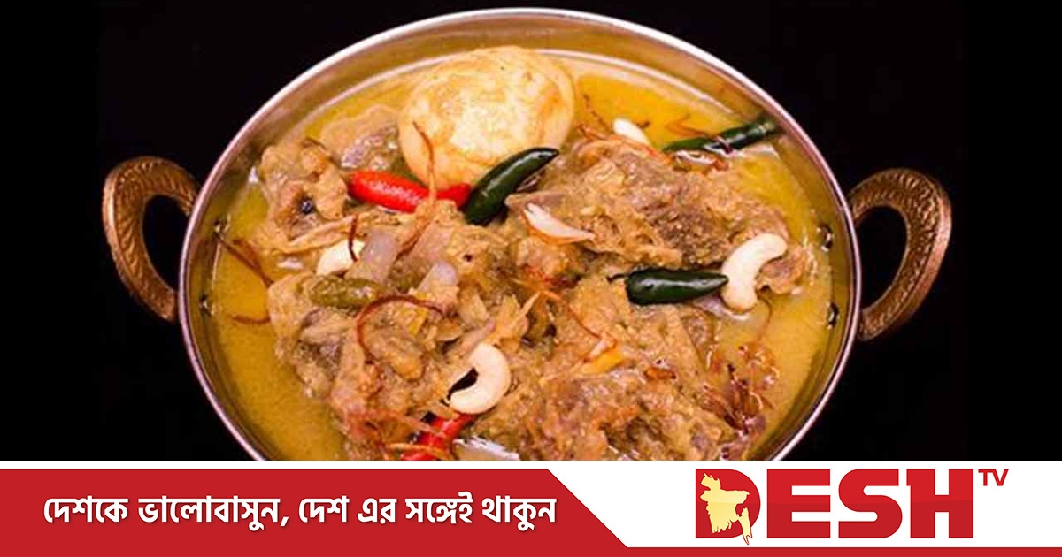 কাচা চিনা বাদাম বাটা- ১ টেবিল চামচ, লবণ- স্বাদমতো, চিনি- দেড় চা চামচ, সাদা গোলমরিচ গুঁড়া- ১ চা চামচ, আলুবোখারা- ৫/৬টি, কিশমিশ- ১ টেবিল চামচ, জয়ফল ও জয়ত্রী বাটা- ১ চা চামচ, জিরা টালা গুঁড়া- দেড় চা চামচ, লাল মরিচ গুঁড়া- ১ চা চামচ, দুধ- হাফ কাপ, ঘি- দেড় টেবিল চামচ, তেল- ৪ টেবিল চামচ, পানি- দেড় কাপ, ডিম সেদ্ধ- সাজানোর জন্য।
