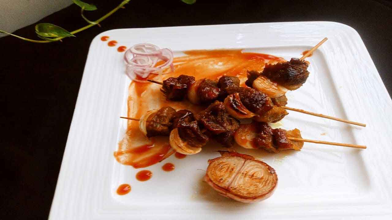 প্রথমে মাংসের ছোট টুকরোগুলো থেঁতলে নিতে হবে। তারপর সব উপকরণ দিয়ে মেখে রাখতে হবে এক ঘণ্টা। এরপর থেঁতলে নেওয়া মাংস ও পেঁয়াজ কাঠিতে গেঁথে তারপরে কড়াইয়ে তেল দিয়ে সেদ্ধ হওয়া পর্যন্ত অল্প আঁচে ভাজতে হবে। ভাঁজা হয়ে গেলে চুলা থেকে নামিয়ে সসের সঙ্গে গরম গরম পরিবেশন করুন।