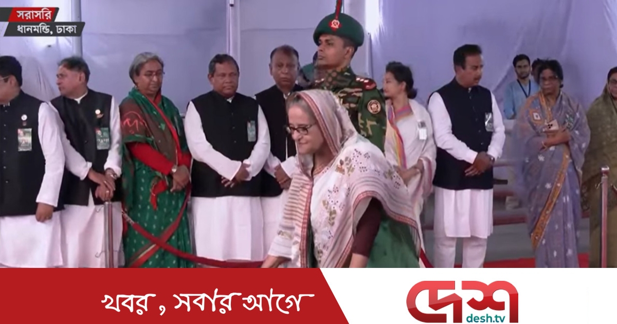 পুষ্পস্তবক অর্পণের পর প্রধানমন্ত্রী শেখ হাসিনা স্বাধীনতার স্থপতি বঙ্গবন্ধুর স্মৃতির প্রতি গভীর শ্রদ্ধা জানিয়ে কিছুক্ষণ নীরবে দাঁড়িয়ে থাকেন।