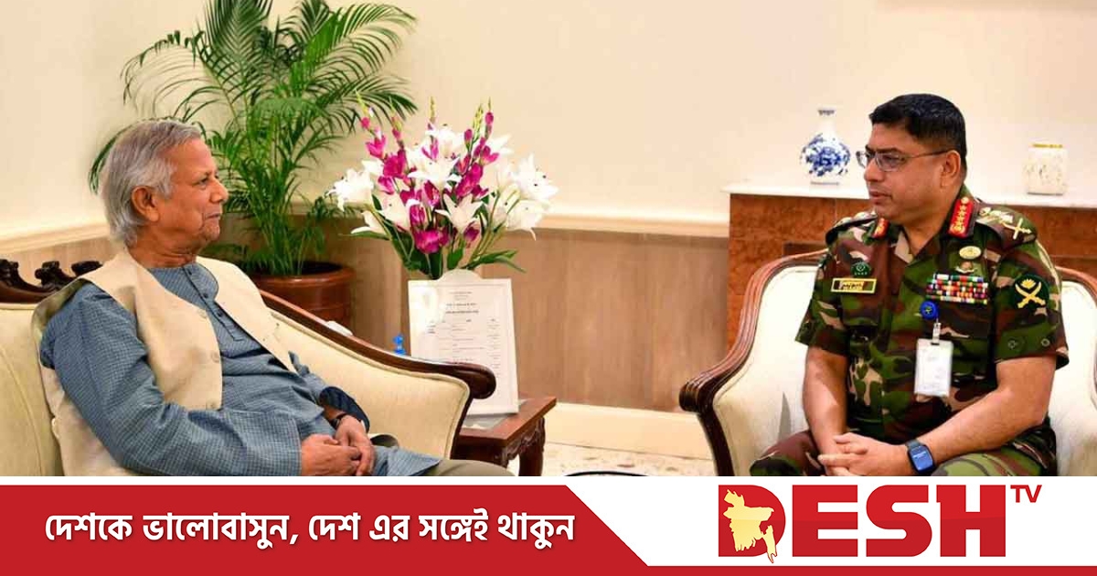 অন্তর্বর্তীকালীন সরকারের প্রধান উপদেষ্টা প্রফেসর মুহাম্মদ ইউনূসের সঙ্গে সৌজন্যে সাক্ষাৎ করেছেন সেনাবাহিনীর প্রধান জেনারেল ওয়াকার-উজ-জামান।