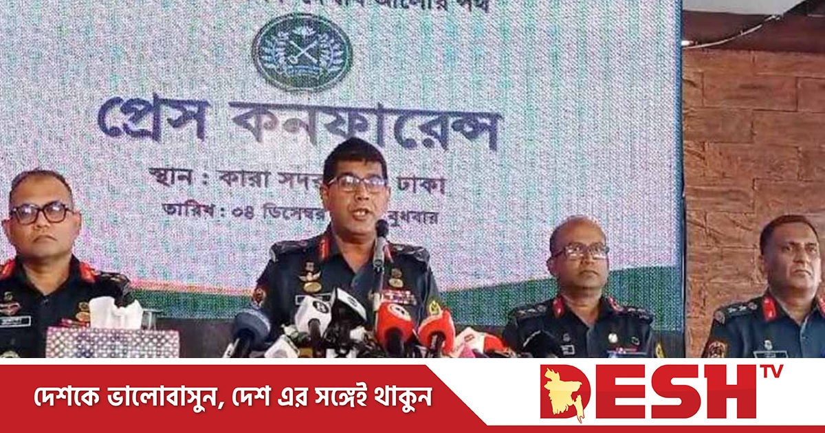 বুধবার (৪ ডিসেম্বর) কারা সদর দপ্তরে আয়োজিত সংবাদ সম্মেলনে এসব কথা বলেন কারা মহাপরিদর্শক ব্রিগেডিয়ার জেনারেল সৈয়দ মো. মোতাহের হোসেন।