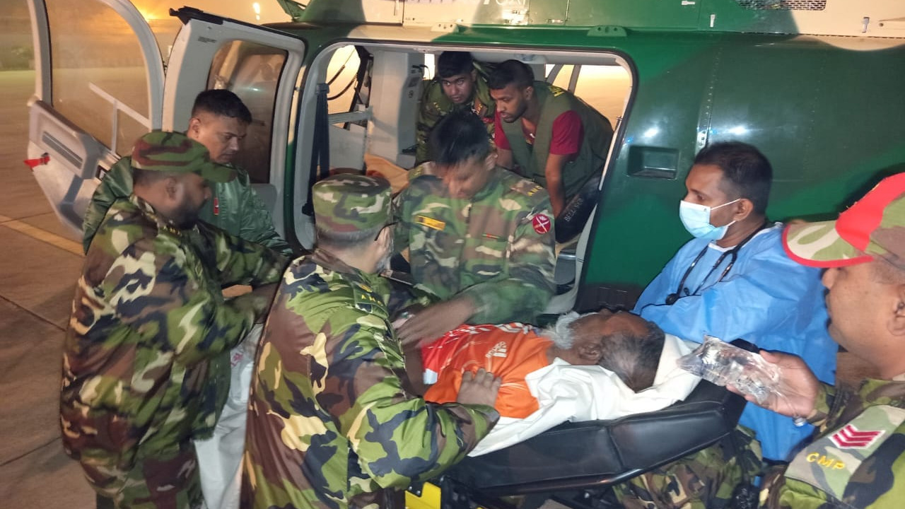 ‘সেখান থেকে আরো উন্নত চিকিৎসার জন্য আর্মি হেলিকপ্টার যোগে ঢাকার সিএমএইচে স্থানান্তর করা হয়।’
