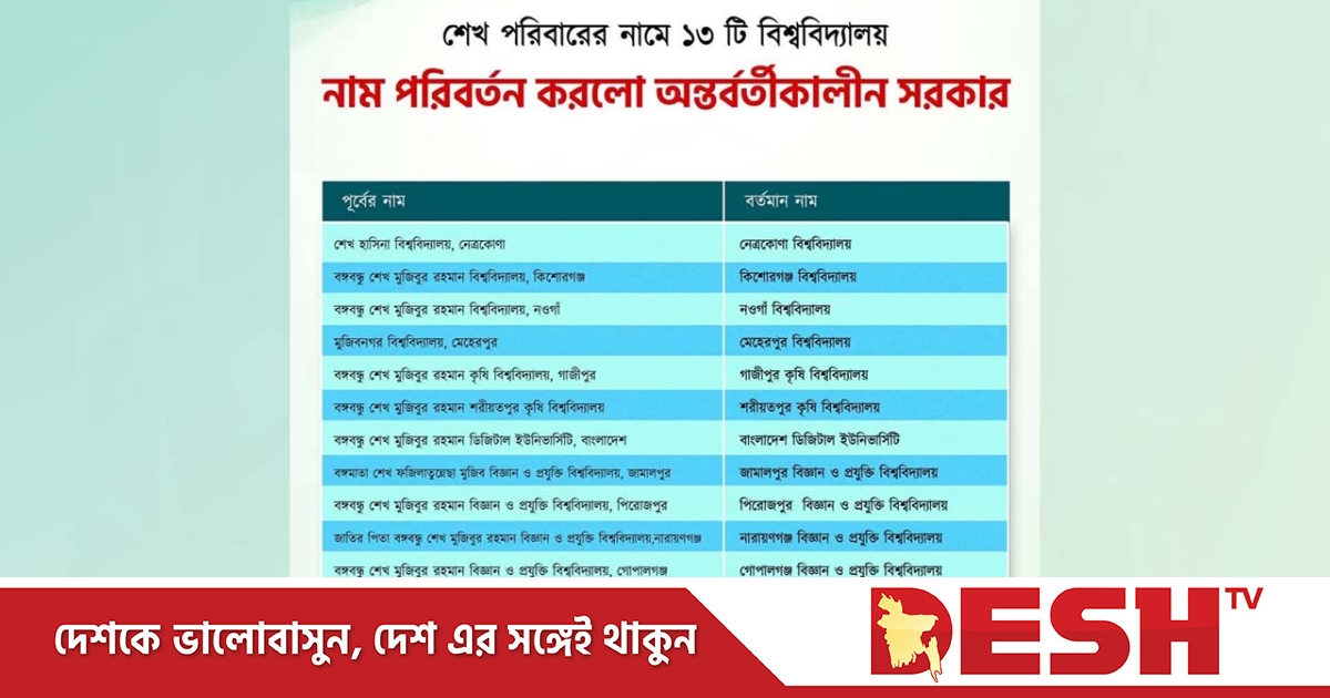 শিক্ষা মন্ত্রণালয় এসব বিশ্ববিদ্যালয়ের নাম পরিবর্তন করার জন্য আজ (বৃহস্পতিবার) উপদেষ্টা পরিষদে উত্থাপন করলে তা পাস হয়।
