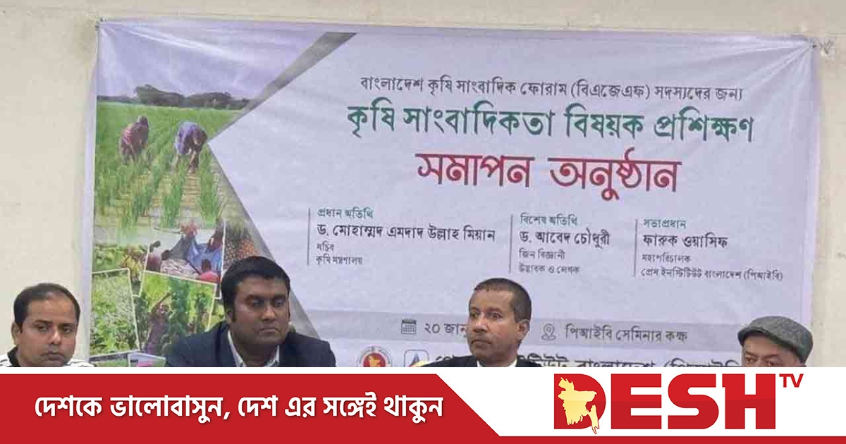 সোমবার (২০ জানুয়ারি) রাজধানীর প্রেস ইন্সটিটিউ বাংলাদেশ (পিআইবি) আয়োজিত বাংলাদেশ কৃষি সাংবাদিক ফোরামের (বিএজেএফ) সদস্যদের জন্য কৃষি সাংবাদিকতা বিষয়ক প্রশিক্ষণের সমাপনী অনুষ্ঠানে প্রধান অতিথির বক্তব্যে তিনি এসব কথা বলেন।