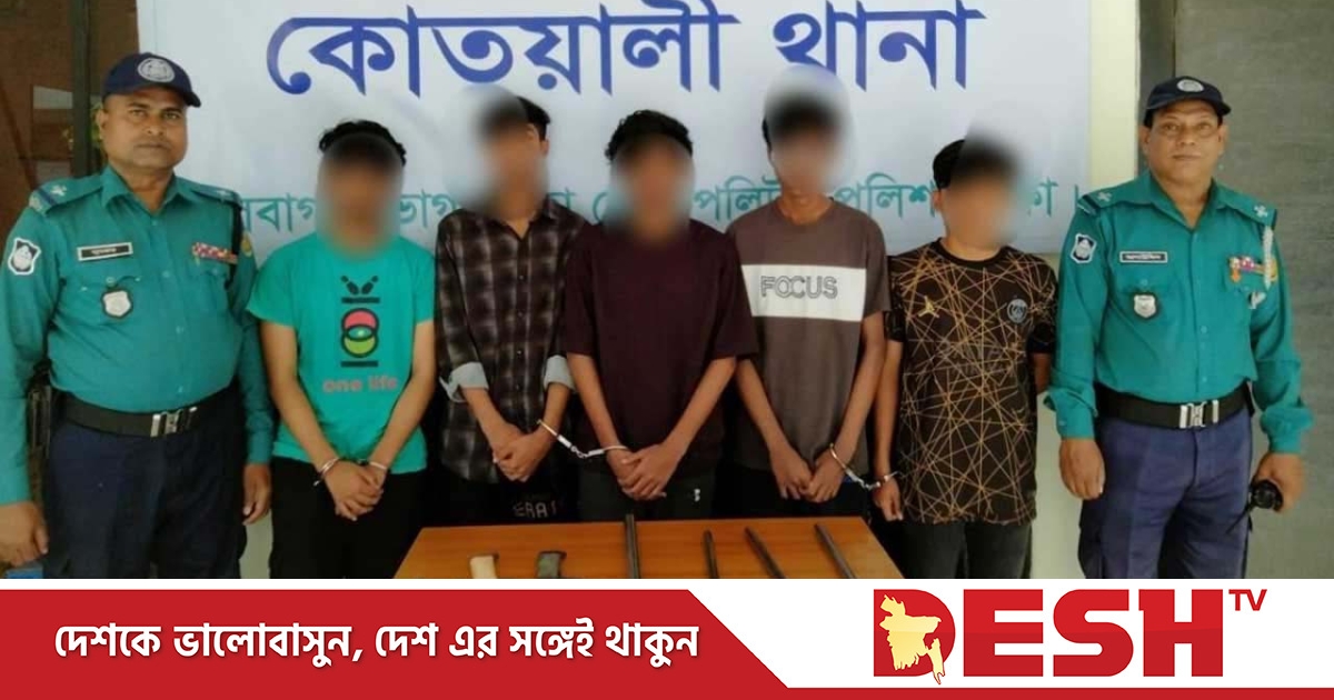 গ্রেপ্তাররা হলেন—মো. সাকিব (১৯), মো. ফারহান খান (১৮), সালমান আহম্মেদ (১৮), মো. জিহান আহম্মেদ (১৮) এবং অপর একজন অপ্রাপ্তবয়স্ক কিশোর। তাদের কাছ থেকে দুটি ধারালো চাপাতি, একটি টিপ চাকু, চারটি বিশেষ ধরনের দেশীয় অস্ত্র ও একটি সেলাই রেঞ্জ উদ্ধার করা হয়েছে।