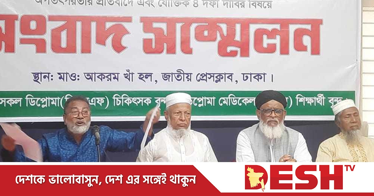 মঙ্গলবার (১১ মার্চ) জাতীয় প্রেস ক্লাবের মাওলানা আকরাম খাঁ হলে সব ডিপ্লোমা (ডিএমএফ) চিকিৎসক ও ডিপ্লোমা মেডিকেল (ম্যাটস) শিক্ষার্থীদের আয়োজিত ‘স্বাস্থ্যখাতকে অস্থিতিশীলের অপচেষ্টা, আদালত অবমাননা, বিচারবিভাগকে প্রভাবিত করার অপতৎপরতার প্রতিবাদ এবং ৪ দফা দাবি’ শীর্ষক সংবাদ সম্মেলনে এসব কথা বলা হয়।
