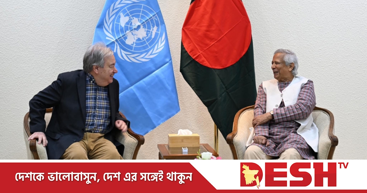 শুক্রবার (১৪ মার্চ) রাজধানীর তেজগাঁওয়ে প্রধান উপদেষ্টা অধ্যাপক ড. মুহাম্মদ ইউনূসের সঙ্গে এক ঘণ্টাব্যাপী বৈঠকে তিনি এসব কথা বলেন। এসময় অন্তর্বর্তী সরকারের নেওয়া সংস্কার প্রক্রিয়ার প্রতি পূর্ণ সমর্থন জানান জাতিসংঘের মহাসচিব।