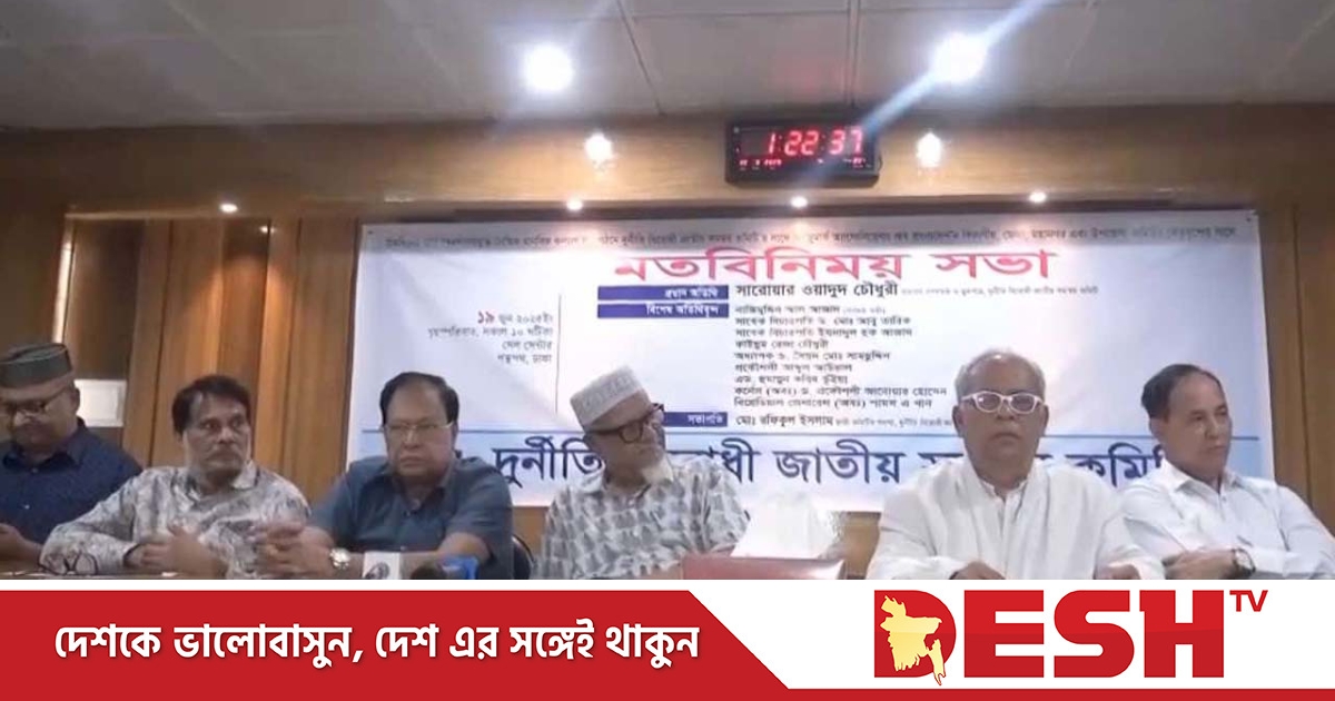 দুর্নীতিবিরোধী জাতীয় সমন্বয় কমিটির মতবিনিময় সভায় অনুষ্ঠিত হয়েছে। বৃহস্পতিবার (১৯ জুন) পান্থপথ সেল সেন্টার মিলনায়তনে এ সভা অনুষ্ঠিত হয়।