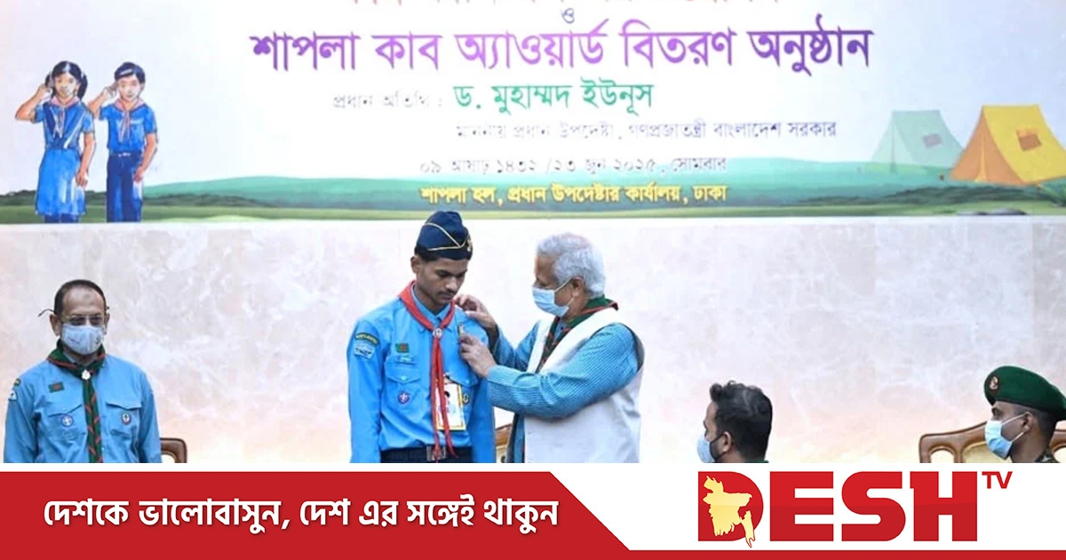 বিবৃতিতে বলা হয়, ঢাকার তেজগাঁওয়ে প্রধান উপদেষ্টার কার্যালয়ের শাপলা হলে আয়োজিত এক অনুষ্ঠানে অধ্যাপক ইউনূস স্কাউটস কার্নিভালের উদ্বোধন করেন। একইসঙ্গে তিনি বিজয়ী স্কাউট সদস্যদের হাতে শাপলা কাব অ্যাওয়ার্ড তুলে দেন।