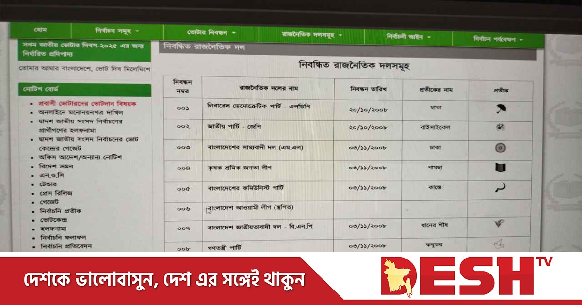 তবে বুধবার (১৬ জুলাই) সকালে ইসির ওয়েবসাইটে দেখা যায় আওয়ামী লীগ (নিবন্ধন স্থগিত) নামের পাশে প্রতীক হিসেবে নৌকা নেই।