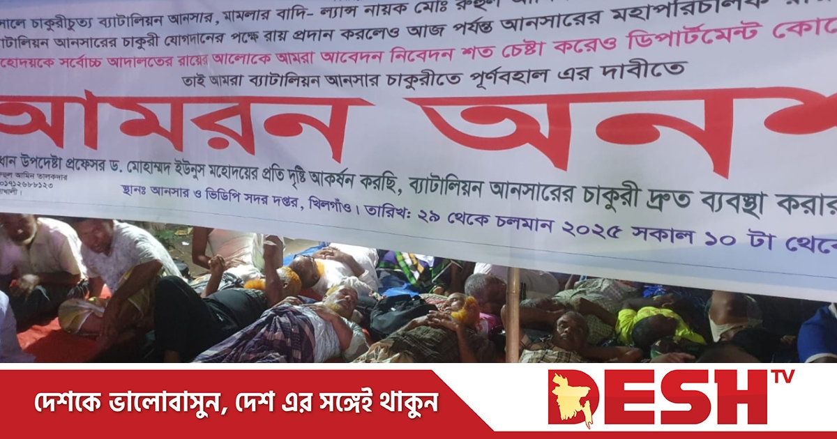 ১৯৯৪ সালে বিভিন্ন অধিকার আদায়ের আন্দোলনে চাকরিচ্যুত ব্যাটালিয়ন আনসারবাহিনীর সদস্যরা প্রাপ্য পেনশন সুযোগ-সুবিধা ও যোগ্যদের পূনর্বহালের দাবিতে রাজধানীর খিলগাও আনসার বিজিপির সদর দপ্তরের এক মাস যাবত আমরণ অনশন করছেন। সর্বোচ্চ আদালতের রায় বাস্তবায়ন না হওয়ায় চরম বিস্ময় ও হতাশা প্রকাশ করছেন ৩১ বছর আগে চাকুরিচ্যুত সদস্যরা। বাদীপক্ষের আইনজীবীর অভিযোগ সরকার ও আনসার কর্তৃপক্ষের উদাসীনতায় ঝুলে আছে এ রায়ের বাস্তবায়ন। এদিকে হাইকোর্টের রায়ের স্পষ্টতা নিয়ে প্রশ্ন তুলেছেন আনসার কর্তৃপক্ষ।