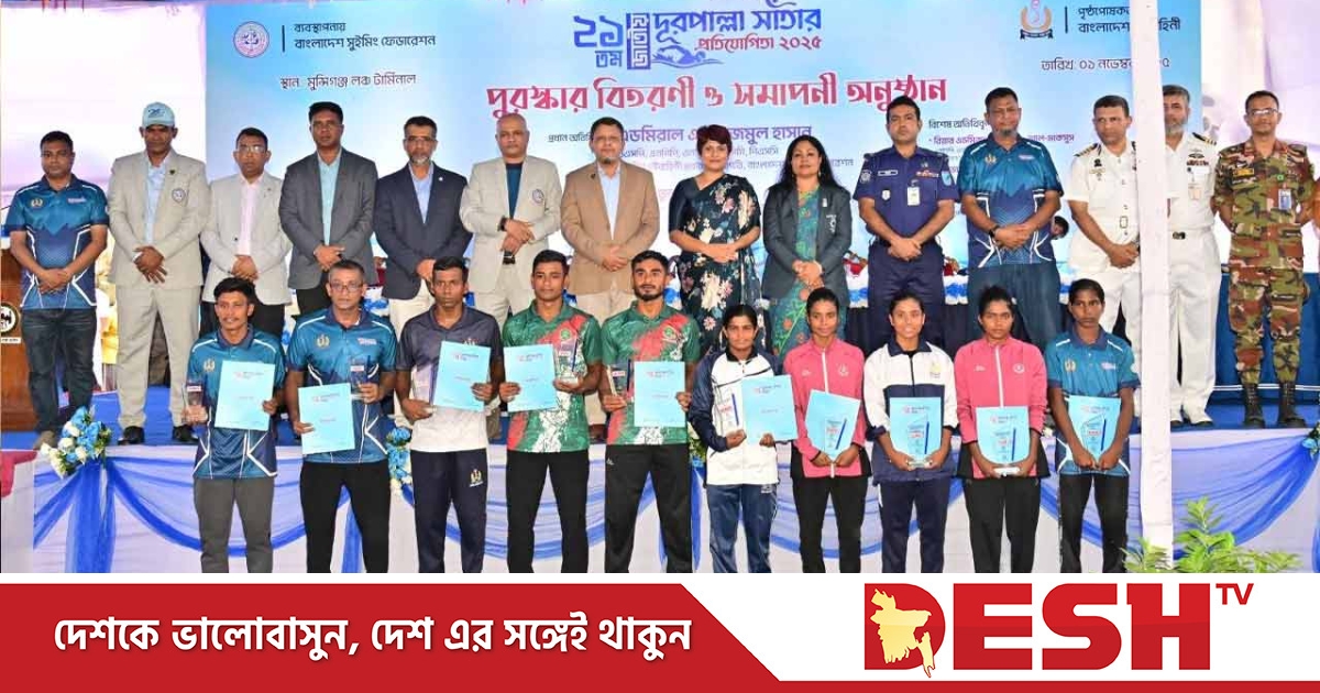 বাংলাদেশ সুইমিং ফেডারেশনের ব্যবস্থাপনায় এবং বাংলাদেশ নৌবাহিনীর পৃষ্ঠপোষকতায় ‘২১তম জাতীয় দূরপাল্লা সাঁতার প্রতিযোগিতা ২০২৫’ শনিবার (১ নভেম্বর) মুন্সীগঞ্জ জেলার ধলেশ্বরী নদীতে অনুষ্ঠিত হয়েছে।