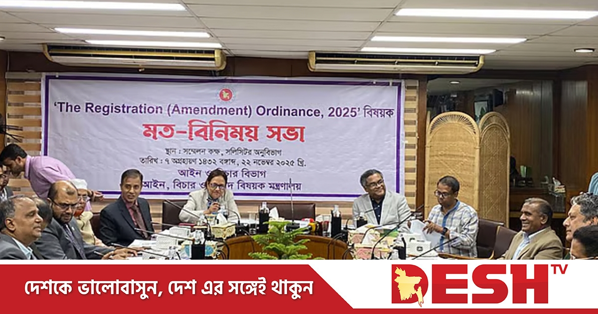 অ্যাটর্নি জেনারেল কার্যালয় ভবনে অবস্থিত সলিসিটর অনুবিভাগের সম্মেলন কক্ষে ‘দ্য রেজিস্ট্রেশন (সংশোধিত) অধ্যাদেশ, ২০২৫’ বিষয়ে এক মতবিনিময় সভায় আইন কমিশনের চেয়ারম্যান এ কথা বলেন।