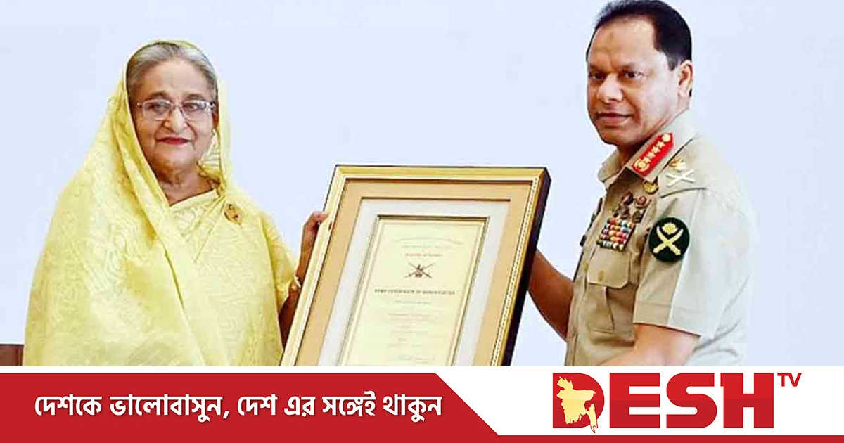 প্রধানমন্ত্রী শেখ হাসিনা বলেছেন, স্বাধীনতা ও সার্বভৌমত্বের প্রতীক বাংলাদেশ সেনাবাহিনী দেশের অতন্দ্র প্রহরী। এ বাহিনীকে দেশের সুরক্ষা নিশ্চিত করতে হবে। বাংলাদেশ শান্তিতে বিশ্বাসী, কারও সঙ্গে যুদ্ধ করতে চায় না।