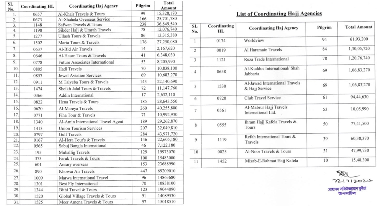 সুষ্ঠু হজ ব্যবস্থাপনার স্বার্থে বিষয়টি অতীব জরুরি বলেও চিঠিগুলোতে উল্লেখ করা হয়েছে।
