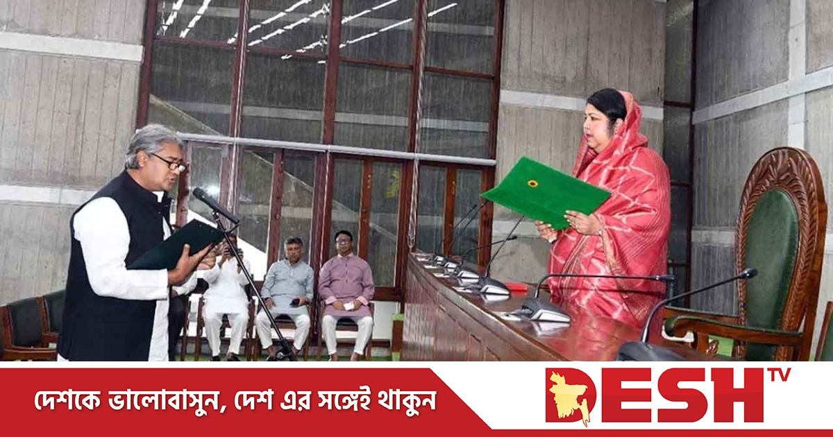 স্পিকার শিরীন শারমিন চৌধুরী জাতীয় সংসদের শপথ কক্ষে তাকে শপথবাক্য পাঠ করান।