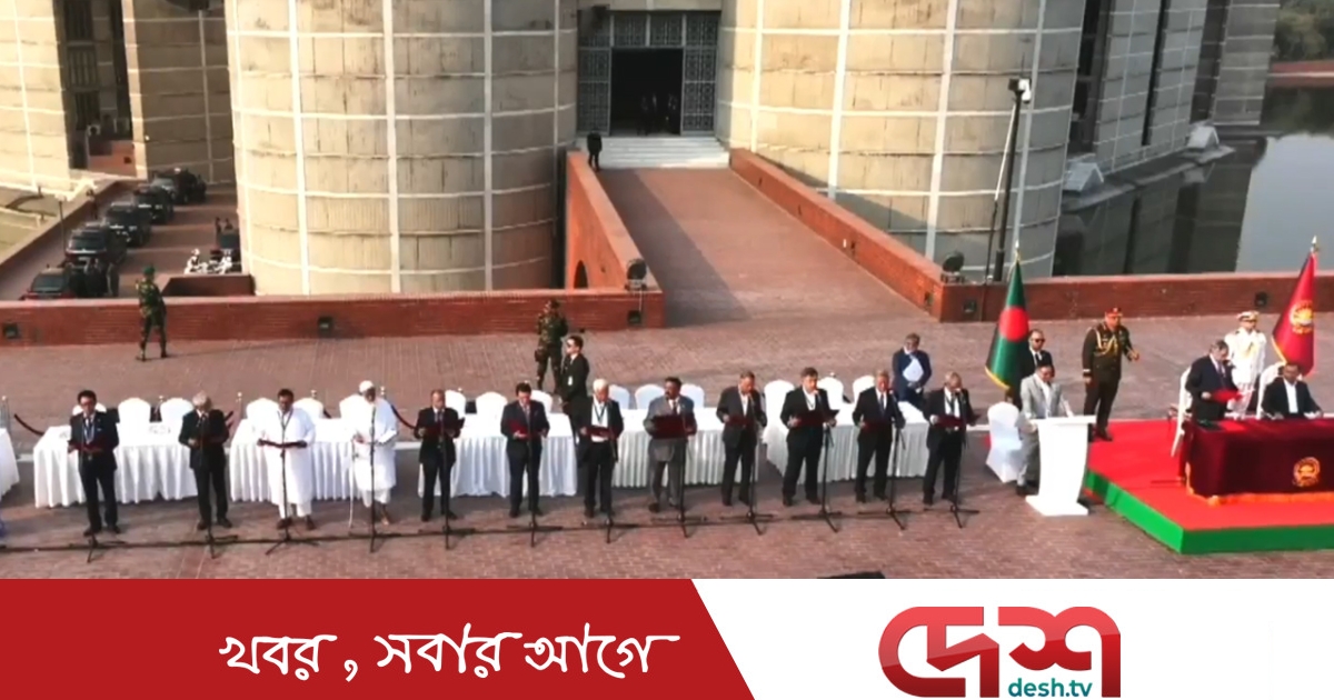 মঙ্গলবার (১৭ ফেব্রুয়ারি) বিকাল সোয়া ৪টার পর জাতীয় সংসদ ভবনের দক্ষিণ প্লাজায় তাদের শপথ পড়ান রাষ্ট্রপতি মো. সাহাবুদ্দিন।