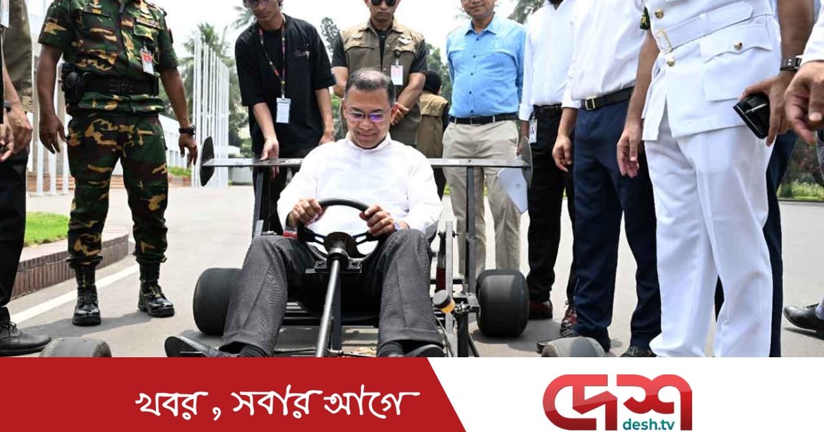কলেজ শিক্ষার্থী রিজয়ান রশীদের নির্মিত গো-কার্ট (রেসিং কার) চালিয়ে তাকে উৎসাহিত করেছেন প্রধানমন্ত্রী তারেক রহমান।